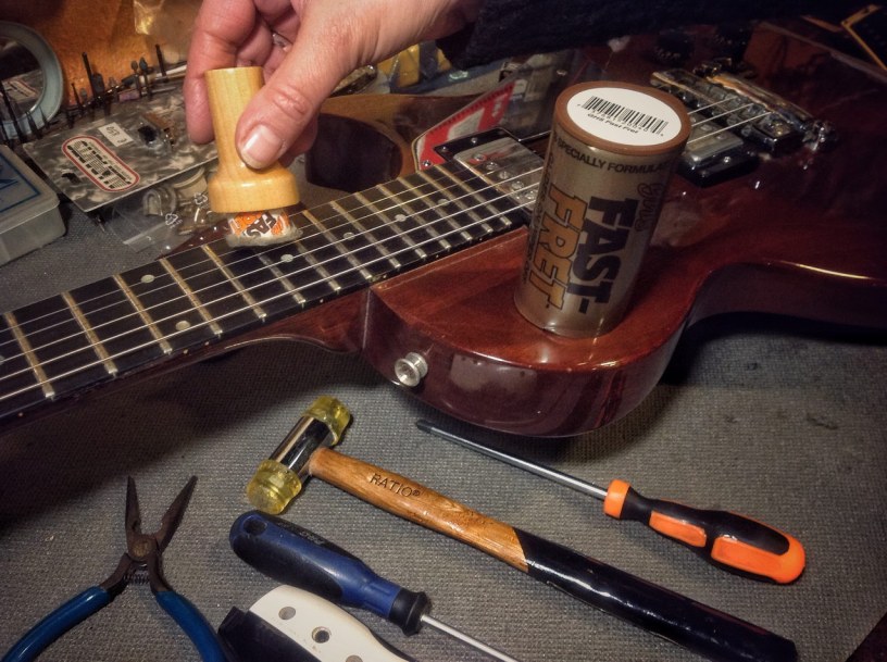 Fast-Fret es un producto que viene en un bote cilíndrico de color marrón protegido por un tapón (esto es especialmente importante, ya que después de su uso es conveniente volver a guardarlo y cerrarlo bien, debido a que lleva una impregnación que conviene evitar que se evapore). Si se cierra bien después de cada uso, suele durar meses, muchos meses. Lo recomendable es usarlo siempre después de cada sesión con la guitarra. Solo hay que esparcirlo por las cuerdas mediante su aplicador de tipo tampón. Además de proteger la cuerda y lubricarla, ayuda a que los dedos se deslicen mejor por el mástil, pero lo más importante es que protege los trastes de rascaduras debidas a la propia corrosión que iría rebajándolos por el uso. También adjuntan un trapito junto con el aplicador, pero este trapo NO ES PARA LAS CUERDAS!!, solo sirve para limpiar el lacado del cuerpo, pero para esto recomendamos hacerlo de otra forma.