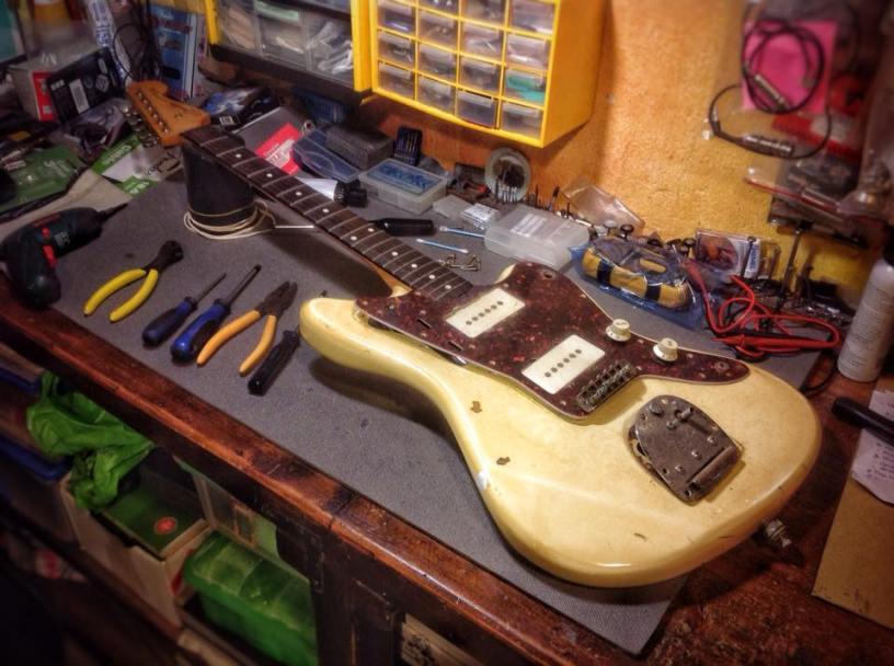 La restauración de esta guitarra Fender Jazzmaster ha sido quizás uno de los retos que más nos ha costado conseguir. Recuperar un instrumento que llevaba más de 20 años encerrado en un estuche, rodeado de humedad y sin ningún tipo de mantenimiento no auguraba nada bueno.