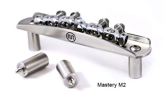 Otro motivo es que son de latón endurecido y se revisten de cromo duro autolubricado patentado y que no se encuentra en ningún otro puente de guitarra. El calor hace que el metal se expanda (en este caso, con las cuerdas cuando se usa el vibrato), lo que a su vez causará problemas de afinación cuando se usan monturas de acero inoxidable y latón simple con sistemas de vibrato. El cromado duro de Mastery elimina esto y es la principal opción de ingeniería para ayudar en la lubricidad.