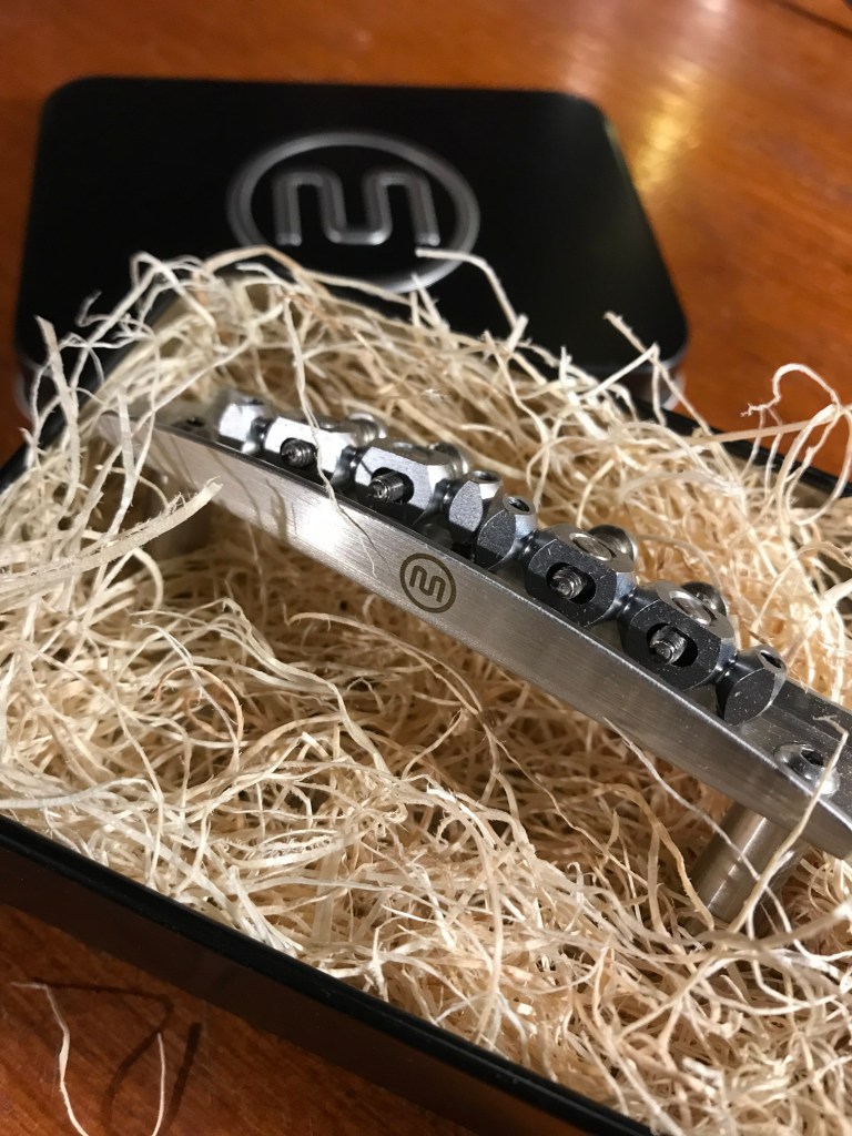 El latón simple es una aleación blanda y desgastará las ranuras en los patines del puente tradicional, especialmente las que se usan con unidades de vibrato, en cuestión de semanas. Las ranuras simples de latón eventualmente harán que las cuerdas se atasquen en las silletas, lo que a su vez provocará zumbidos y problemas de afinación. El cromado duro patentado por Mastery crea una superficie ocho veces más dura que el latón simple y permite que las cuerdas se deslicen suavemente por la superficie de la silleta mientras conserva las propiedades acústicas en la transferencia de vibración de la cuerda al cuerpo, dándole a su guitarra una resonancia mucho mayor que incluso apreciará acústicamente.